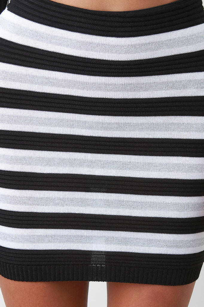 Description This mini skirt features soft knit, horizontal stripe design with shimmer accent, elasticized waist, and rib knit hemline. Accessories sold separately. Made in U.S.A. 92% Acrylic, 6% Elastic, 2% Metallic.