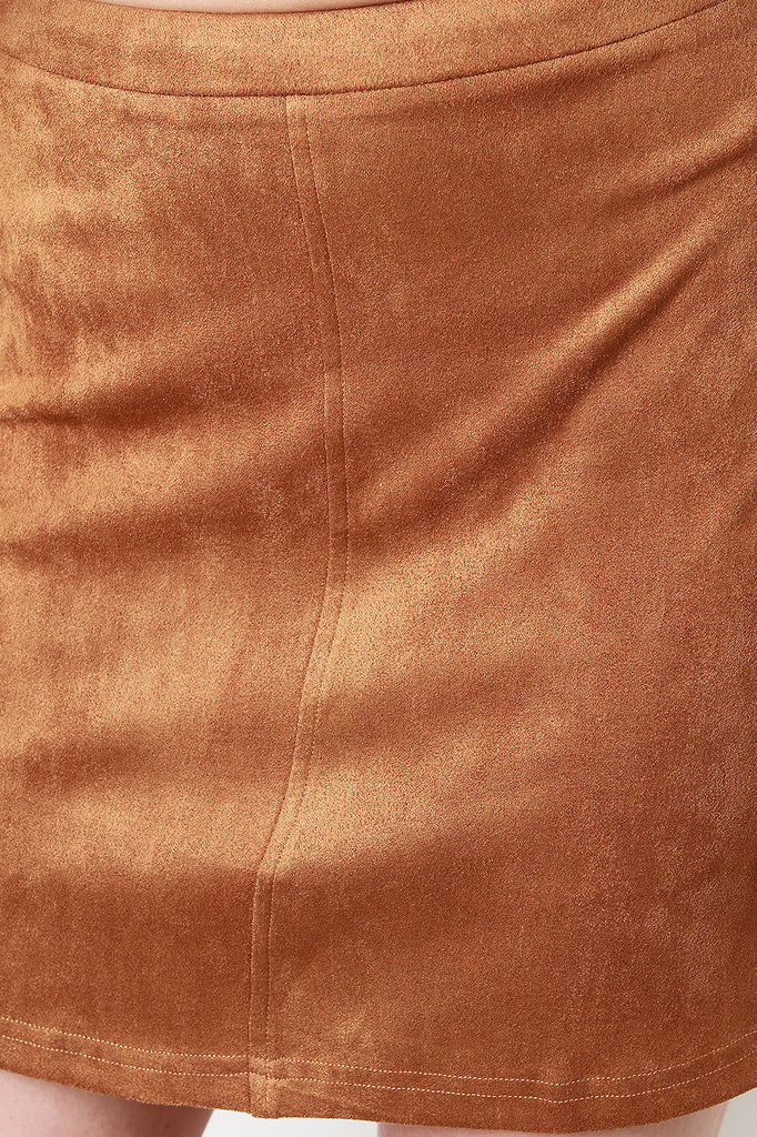 This vegan suede and finished with a concealed back zipper closure. Accessories sold separately. 90% Polyester, 10% Spandex.